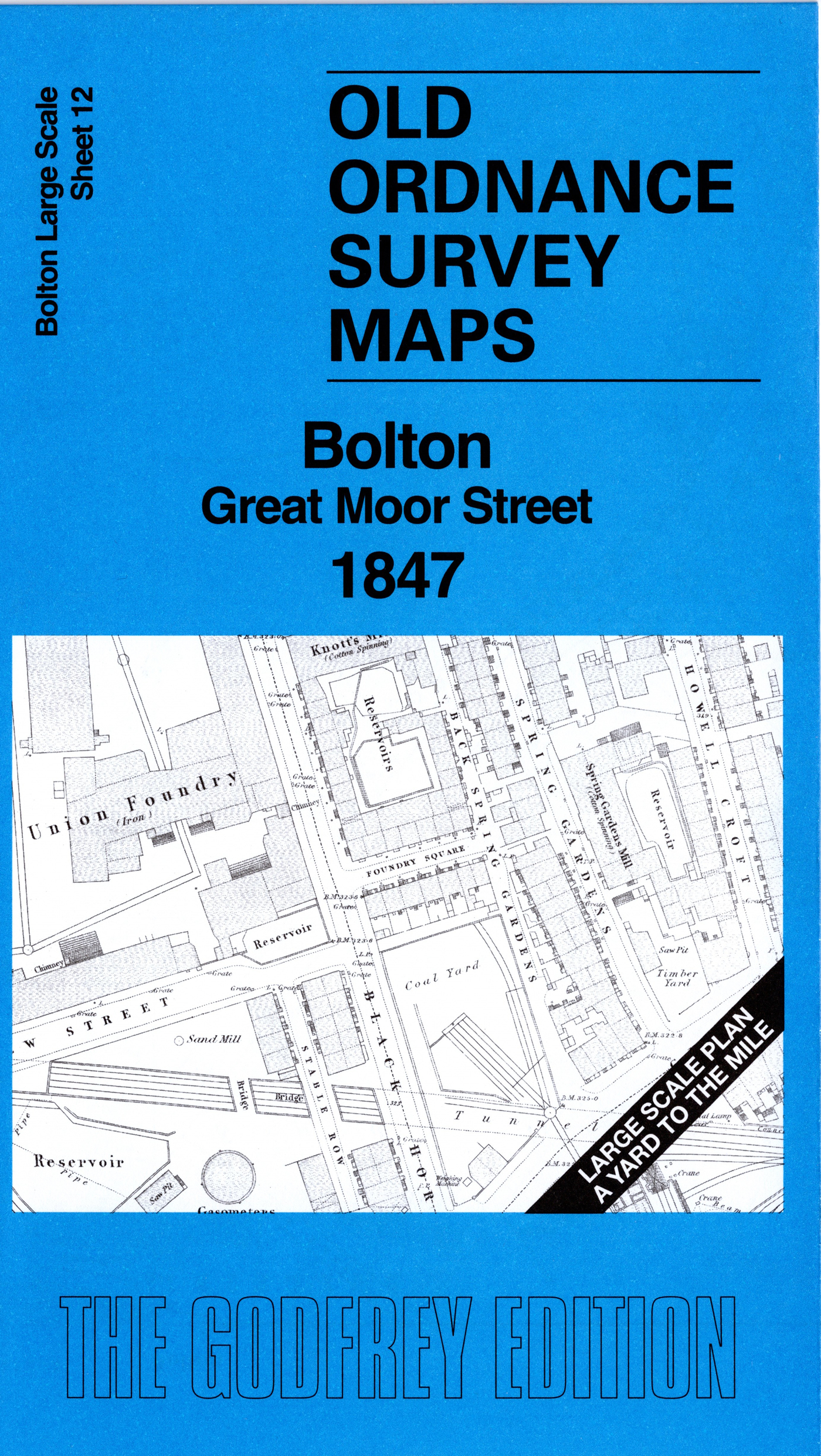 This very detailed map is especially notable for the Bolton & Liverpool Railway's Great Moor Street station, one of the world's first passenger railways. Other features include Ormrod's Mills, Victoria Mill, Martin's Mill, Union Foundry, Soho Foundry, Bullfield Mill, Crook's Mill, the Union Workhouse, and the chapels and houses of this busy central area.