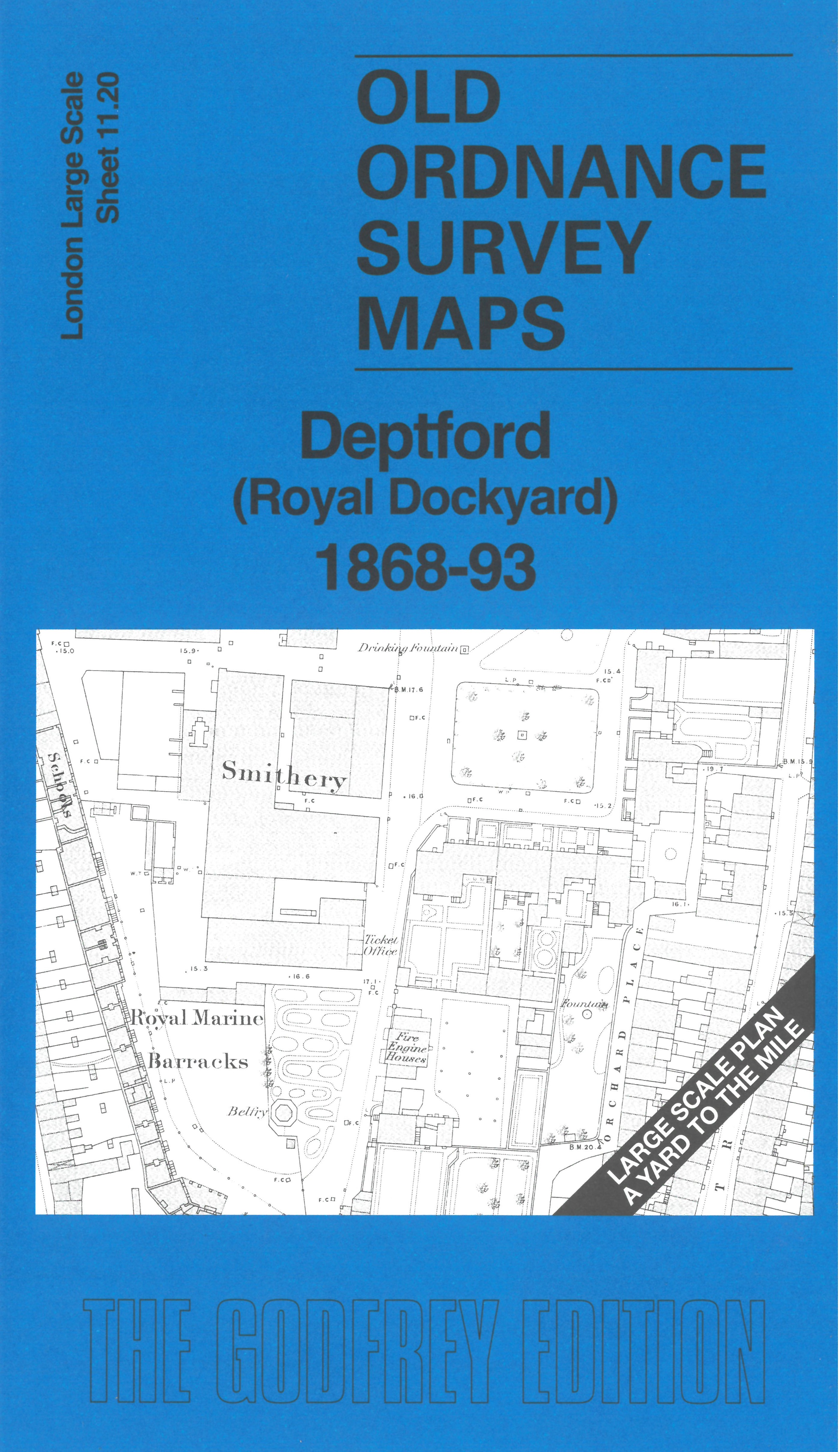 This very detailed map covers the north of Deptford and the Royal Dockyard area. Features include Royal Dockyard with docks, slips, timber sheds etc; Royal Marine Barracks, small stretch of Grand Surrey Canal, Blackhorse Bridge, Victoria Wharf, police station, wharves, St Nicholas church, etc.